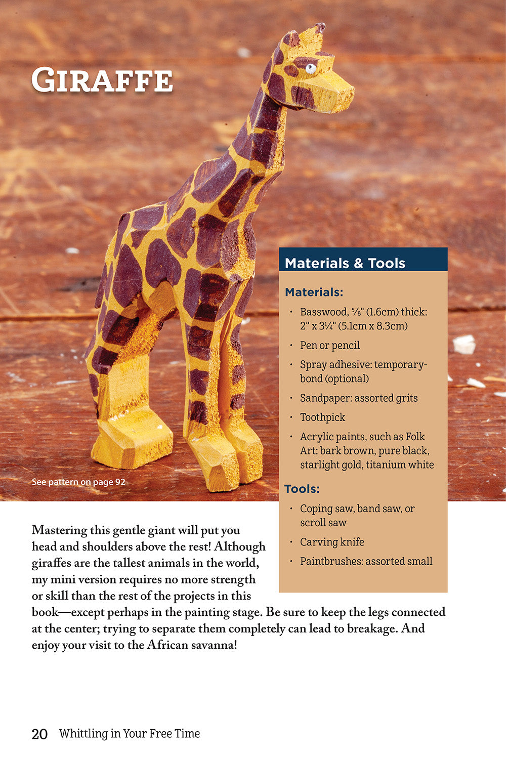 In continuation of the bestselling 20-Minute Whittling Projects, author, whittling artist, carving teacher, and Woodcarving Illustrated contributor Tom Hindes brings you 16 more fast, easy, and fun whittling projects to complete in just one short sitting! With step-by-step instructions, high-quality photography, and a focus on the beginner-friendly flat-plane style of whittling, you’ll carve a variety of safari, aquatic, woodland, farm, and domestic animals. Progressing from very simple to more challenging, each project is meant to encourage you along the rewarding and relaxing path of whittling and build your skills. Whether you’re new to whittling or have been doing it for years and want to try a new method, this book is the go-to resource to keep on carving! ·
